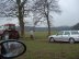 Halfway up the M61 and phone call from Les asking if I had "tow rope?" I said I had, but how far in the field was he? I spent the best part of an hour trying to find another rope and finally procurred one from a garage on the outskirts of Preston! As I arrived at the farm the heavens had really opened up and the track to the river was the worst I had seen it all season,as I passed throught the last gate I could see the car stuck upto its axles in mud, 15yds of the track (what the hell had he been doing?)